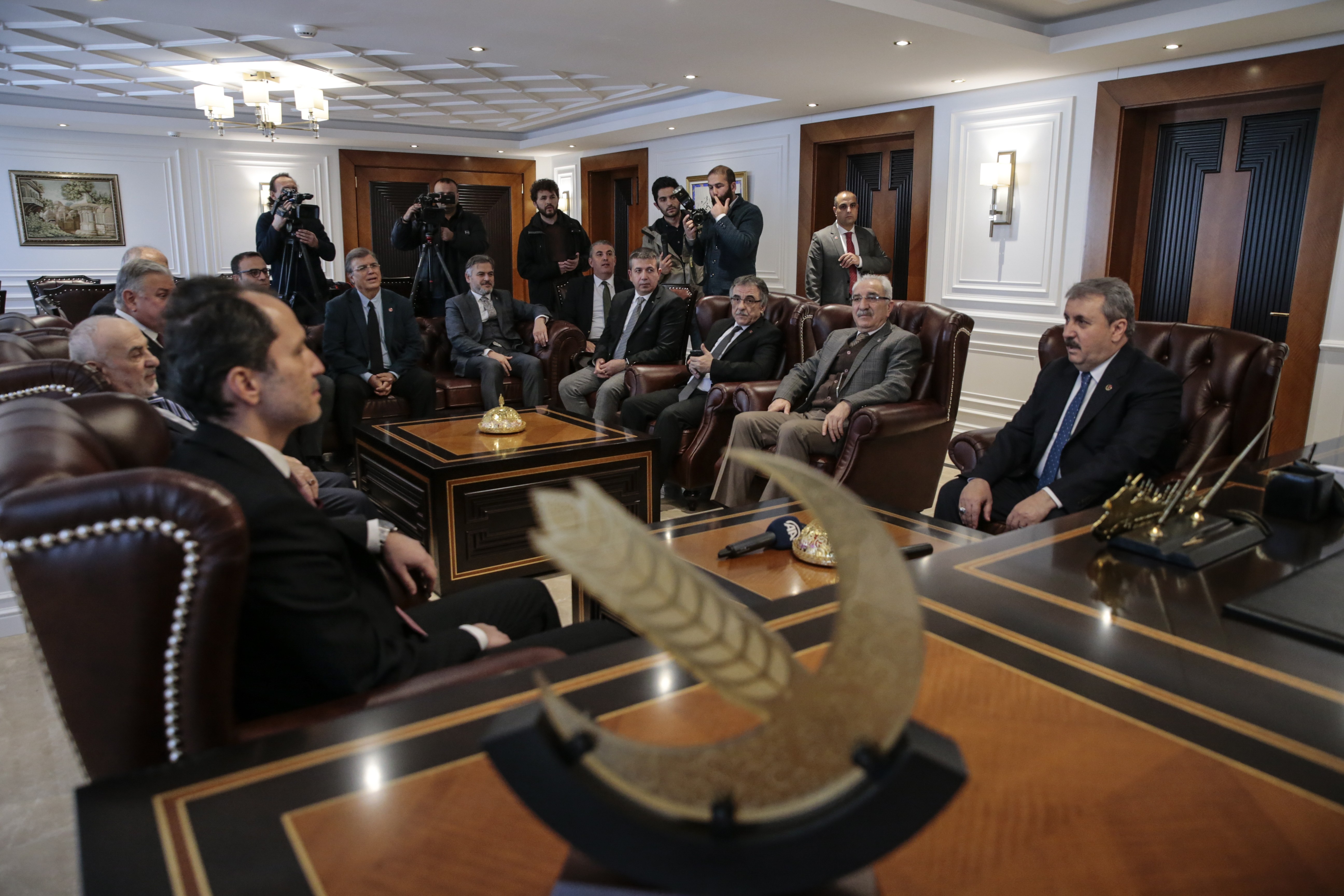 BBP lideri Mustafa Destici, Yeniden Refah Partisi Genel Başkanı Fatih Erbakan'ı makamında ziyaret ederek, kasımda düzenlenen 1. Olağan Büyük Kongre için tebrik etti.