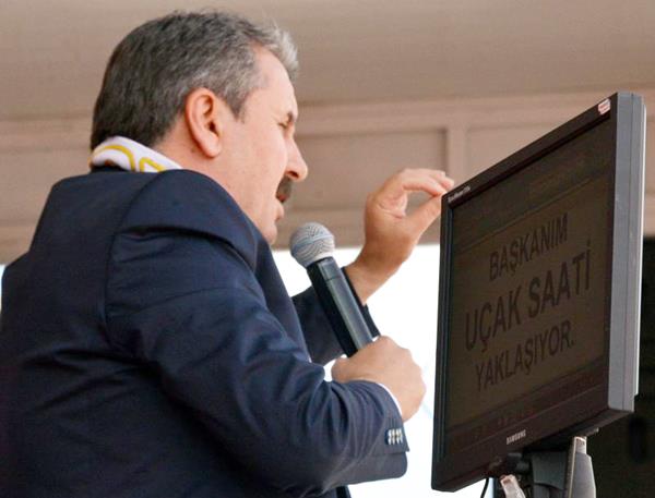 Mustafa Destici'ye prompterdan 'uçak saati' uyarısı
