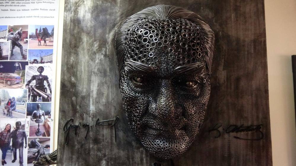 Elazığ’da bir öğretim görevlisinin 2 bin endüstriyel atıktan yaptığı Atatürk portresi görenleri korkuttu.