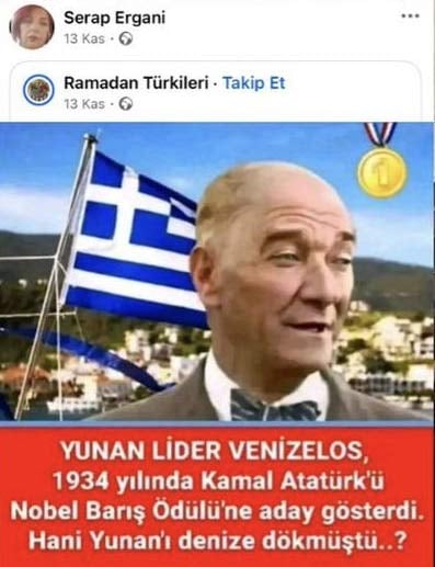 AK Parti İzmir Kadın Kolları’nda görev yapan Serap Ergani’nin sosyal medya hesabındaki Mustafa Kemal paylaşımı gündem oldu.