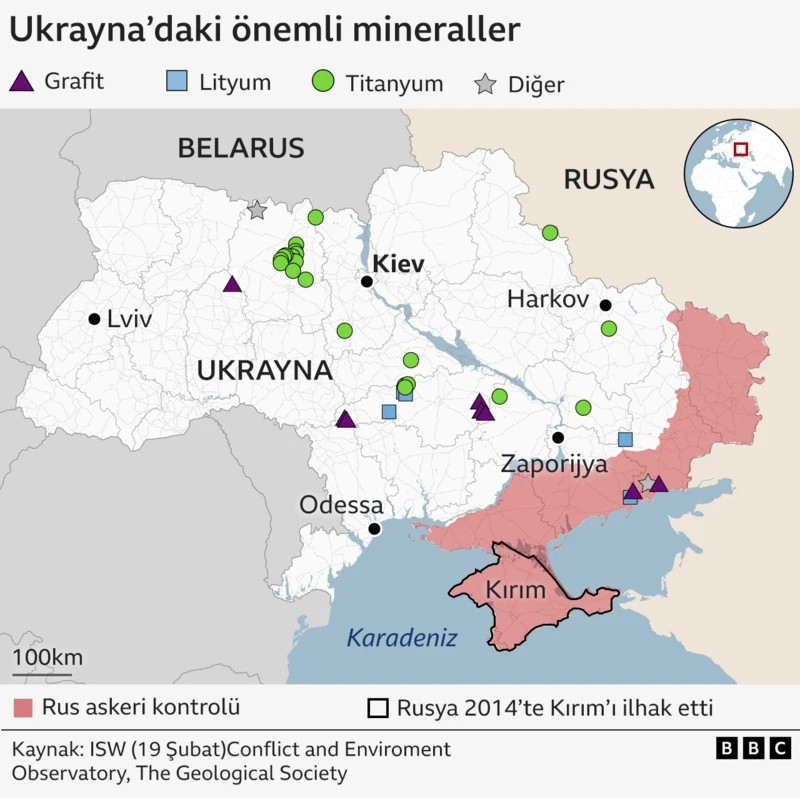 Ukrayna'da nadir toprak elementleri haricinde Lityum gibi kritik mineraller adı verilen kaynaklar da bulunuyor.