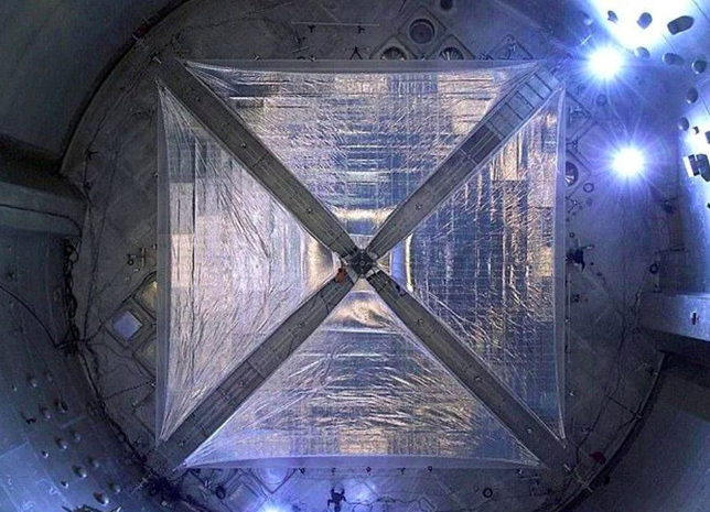20 milyon dolarlık bu araç, güneş ışığının basıncını kullanarak itiş gücü sağlamayı amaçlayan dört yansıtıcı "yelken" ile donatıldı.