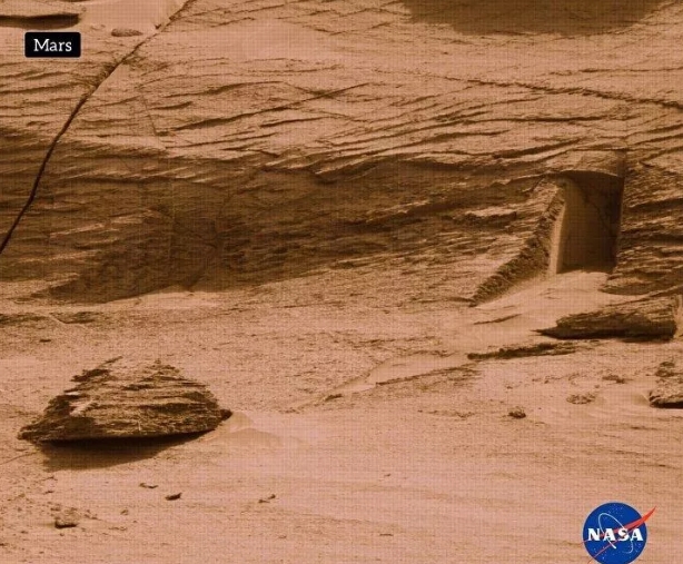 NASA'nın Curiosity uzay aracındaki Mast Camera tarafından 7 Mayıs'ta çekilen görüntüde, kayanın içine doğru kazılmış bir kapıya benzeyen yapı görüldü.