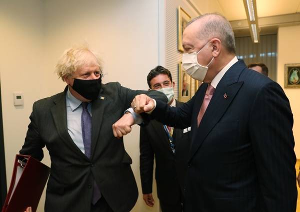 Başkan Erdoğan, Macron ile görüşmesinin sona ermesinden dakikalar sonra İngiltere Başbakanı Boris Johnson ile toplantıya başladı. Kritik görüşmede yine iki ülke ilişkileri başta olmak üzere küresel gündem ele alındı. Görüşme yarım saat kadar sürdü.
