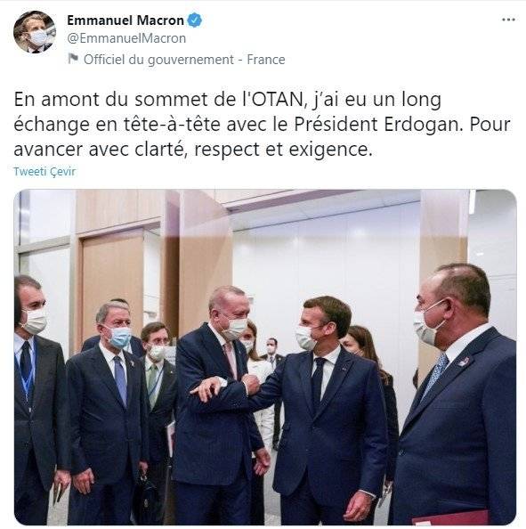 Kritik görüşmenin sona ermesinin ardından Macron, resmi Twitter hesabından görüşmeye ilişkin bir paylaşım gerçekleştirdi. Başkan Erdoğan'la olan fotoğrafını paylaşan Macron, "NATO Zirvesi öncesinde Başkan Erdoğan'la açıklık, saygı ve karşılıklı talepler üzerine uzun bir görüşme gerçekleştirdik" ifadelerini kullandı.