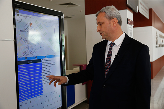 Ümraniye Eğitim ve Araştırma Hastanesinde hayata geçirilen "Navigasyon Destekli Hasta Yönlendirme Sistemi" uygulaması, hastaların bina içerisindeki tüm bölümlere kolaylıkla ulaşabilmesini sağlıyor.