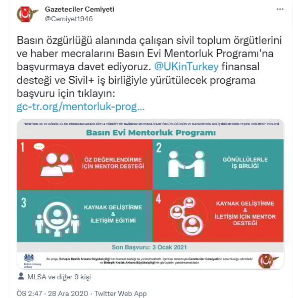 İyi Parti Lideri Akşener’in “dürüst ve namuslu gazeteciler baskı altında” diyerek kürsüye çıkardığı başörtü karşıtı Nazmi Bilgin’in İngiltere Büyükelçiliği, AB Türkiye Delegasyonu ve Norveç Büyükelçiliği’nden AGC’ye fon kotardığı tespit edildi. Bilgin’in “M4D” adlı proje için Avrupa Birliği’nden, “Basın Evi Gönüllülük Programı” için İngiltere Büyükelçiliği’nden, “İnsan Hakları ve Bağımsız Medya Projesi” için Norveç Büyükelçiliği’nden finansal destek aldığı öğrenildi. AGC’nin ayrıca İngiltere Büyükelçiliği fonuyla 2021 yılında 5 gazeteciye “özel haber” desteği sağlayıp genç gazetecileri devşirme yoluna gittiği bildirildi.
