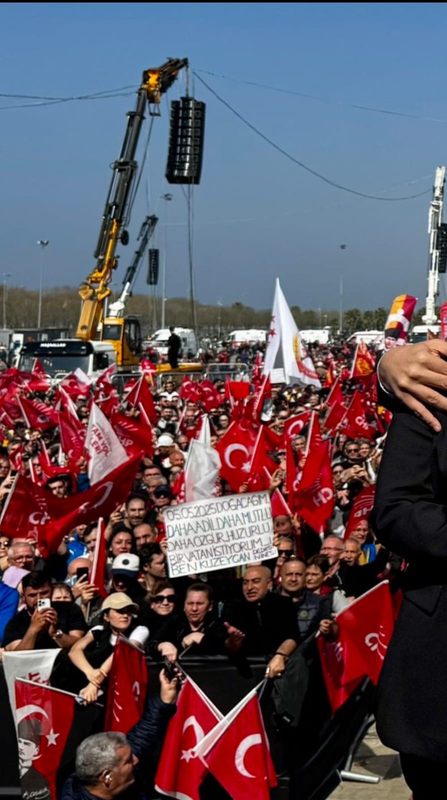 Yolsuzluk suçlamasıyla tutuklu Ekrem İmamoğlu'nu savunmak üzere CHP tarafından dün organize edilen Maltepe Mitingi'nde açılan bir pankart, Başbakan Adnan Menderes'in haince şehid edilmesiyle sonuçlanan 27 Mayıs 1960'daki darbe sürecini çağrıştırdı.