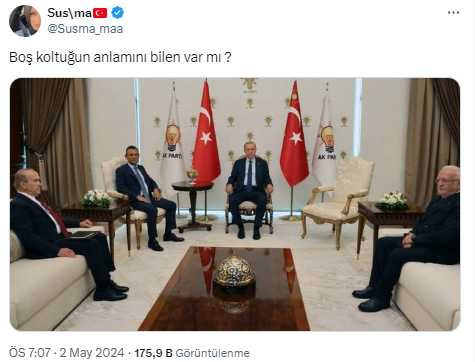 Boş koltuğun kime ait olduğunu bilen var mı? Diye soruldu. Çok sayıda sosyal medya kullanıcısı da kendine göre yorum yaptı. İşte onlardan bazıları.