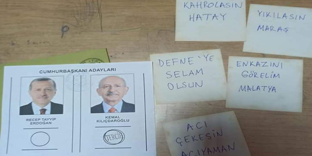 Bir seçmen sandık başında skandal görüntü paylaştı. Kılıçdaroğlu seçmeni olduğu anlaşılan kişi depremzedelere hakaretlerle dolu notlar bıraktı. Bunu gören bir çok vatandaş 'nefretinizde boğulun' diyerek olaya tepki gösterdi.