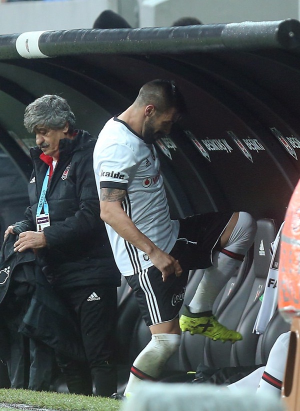 Başını iki yana sallayarak saha kenarına gelen tecrübeli oyuncu, kendisinin yerine oyuna giren Cenk Tosun'a sarıldıktan sonra yedek kulübesinde kendisine tebrik etmek isteyenlerin ellerini tersledi.