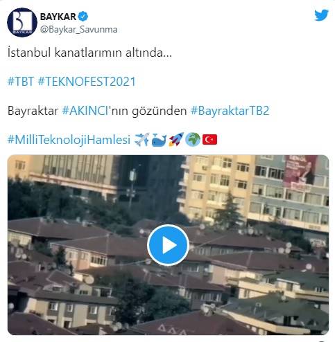 BAYKAR Savunma'nın resmi Twitter hesabından AKINCI TİHA'nın gözünden Bayraktar TB2'nin İstanbul semalarındaki oluşturduğu görsel şölen paylaşıldı.