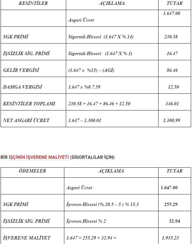 2016 Ocak ayından itibaren asgari ücretin bin 300 TL olması neticesinde asgari ücret hesaplama işlemleri konusunda ilave bilgiye ihtiyaç duyulmaktadır. SGK Kamu Yönetimi Uzmanı Mustafa İtişken'in derlediği tabloya göre 'net asgari ücret nasıl hesaplanır', 'asgari ücretle çalışan bir kişinin devlete maliyeti ne kadardır' gibi sorulara cevap bulacağız. İşte o tablolar: