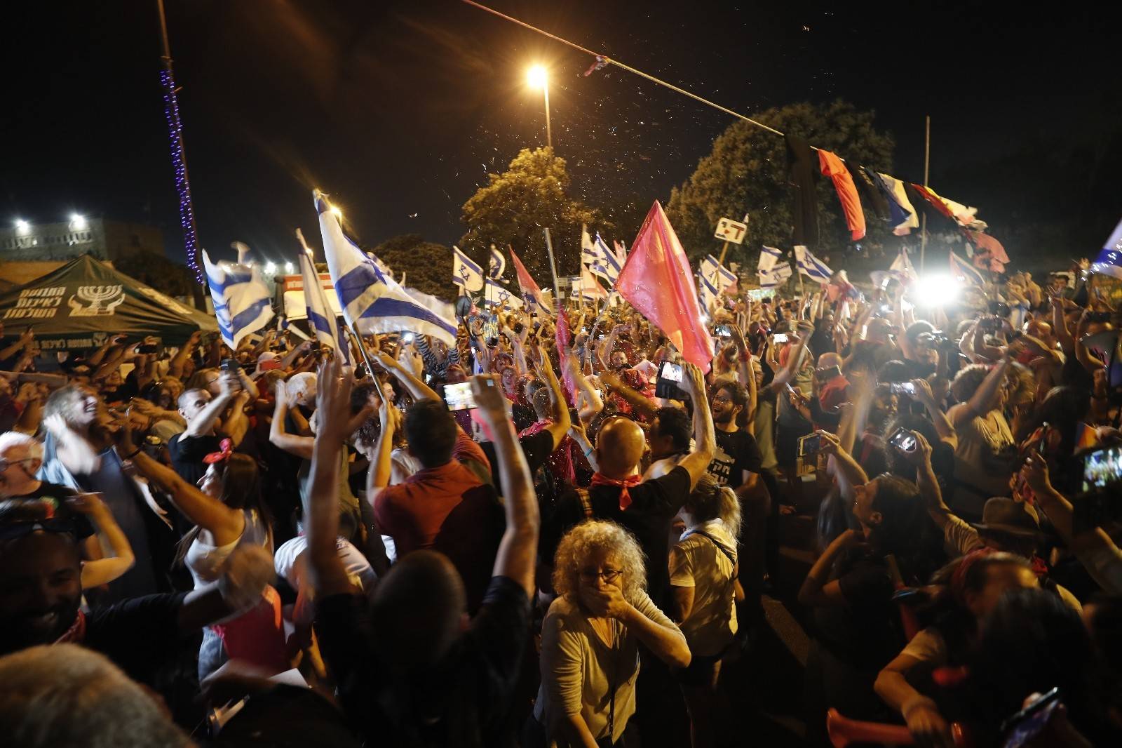 Başkent Tel Aviv'de bulunan Rabin Meydanı'nda toplanan binlerce kişi, Netanyahu döneminin sona erişini kutladı. Göstericiler ellerinde İsrail bayrakları ile "Güle güle Bibi" yazılı pankartlar taşıdı.