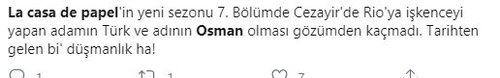 Türkiye'de de büyük bir kitle tarafından takip edilen Netflix'in La Casa De Papel isimli hırsızlık dizisinde Osman isimli Türk karakter işkenceci olarak gösterildi.