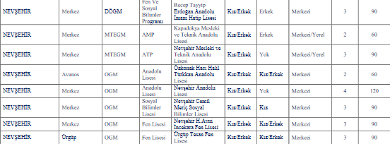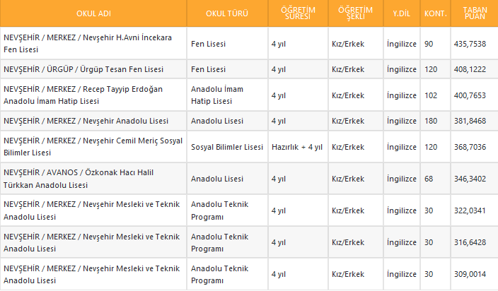 Nevşehir liseler taban puanı ve yüzdelikleri için tıklayınız...