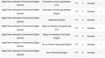 Niğde Ömer Halisdemir Üniversitesi 2 yıllık taban puanları 2021, yüzdelik dilimleri ve kontenjan sayıları kaçtır?