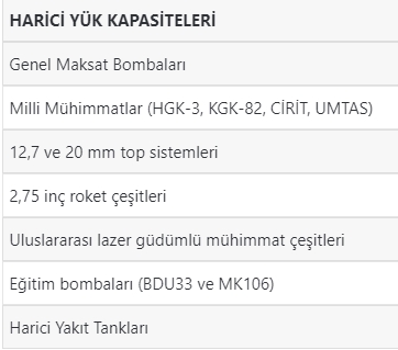 HÜRKUŞ’un sahip olduğu gelişmiş eğitim kabiliyetleri korunmakla beraber, üzerinde 7 harici yük istasyonuyla HÜRKUŞ-C, kullanıcılarına; yüksek irtifada ve zorlu coğrafyalarda, gündüz ve gece koşullarında, zorlu görevleri gerçekleştirebilmek için yararlanılabilecek olan 1500 kg’a kadar geniş bir faydalı yük kapasitesi sunmaktadır.