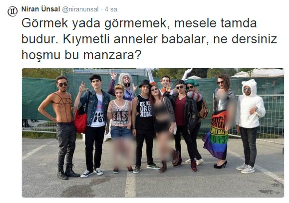 Lady Gaga adlı şarkıcının İstanbul'daki sapkın konseri tepki çekmeye devam ediyor. Niran Ünsal, Gaga konserine giden gençlerin fotoğraflarını paylaşarak anne ve babalara seslendi: "Bu manzara hoş mu?"