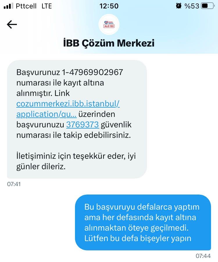 İmamoğlu adeta vatandaşla dalga geçermiş gibi not alındığına dair bilgi mesajı göndermekle yetiniyor.