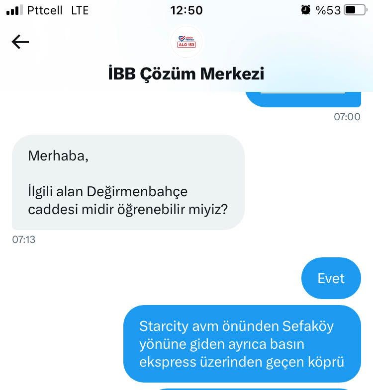 İşte Serdar Beltaş'ın İBB Çözüm Merkezi'ne yazdığı mesaj ve aldığı cevap;