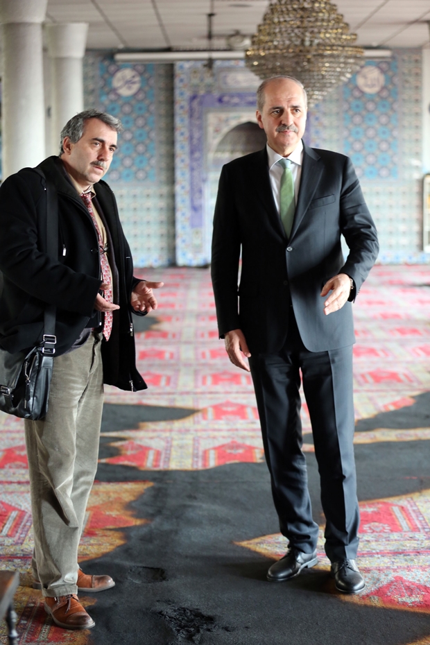 Başbakan Yardımcısı Numan Kurtulmuş, Almanya'nın Witten kentinde geçen hafta kundaklanan Sultan Ahmet Camii'ni ziyaret etti. Essen Başkonsolosu Şule Özkaya'dan olay hakkında detaylı bilgi alan Kurtulmuş, caminin yanan kısımlarını inceledi. Cami imamının cübbesinin de yangında zarar görmesi dikkat çekti. Ziyarette, gazetemiz Ankara temsilcisi Serdar Arseven de hazır bulundu.