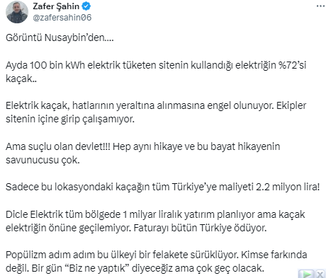 Konuyu sosyal medya hesabından duyuran gazeteci Zafer Şahin; “Ama suçlu olan devlet!!! Hep aynı hikaye ve bu bayat hikayenin savunucusu çok. Sadece bu lokasyondaki kaçağın tüm Türkiye’ye maliyeti 2.2 milyon lira!