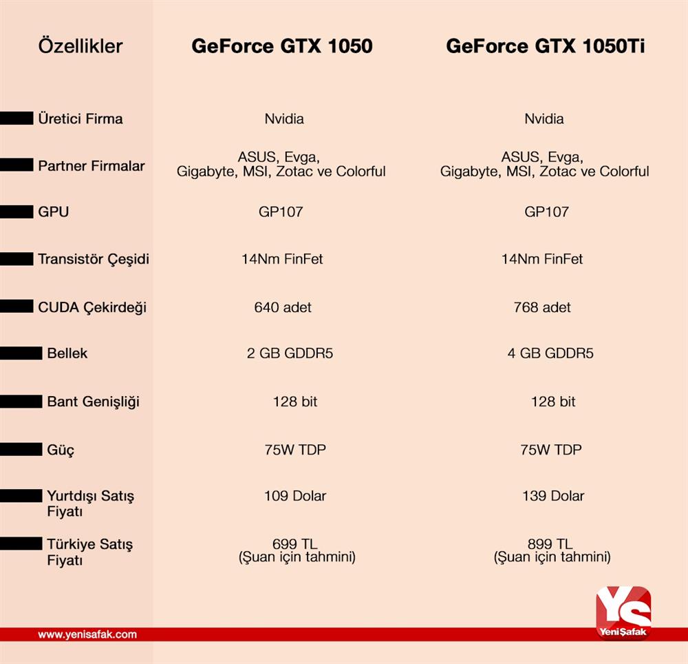 Yenilenmiş14 Nm FinFet teknolojisi ile birlikte gelen ekran kartları GTX 1050 ve GTX 1050Ti, Pascal mimarisi ile birlikte duyuruldu. Üretici firma eski versiyonlarda genellikle Maxwell mimarisi kullanıyordu.