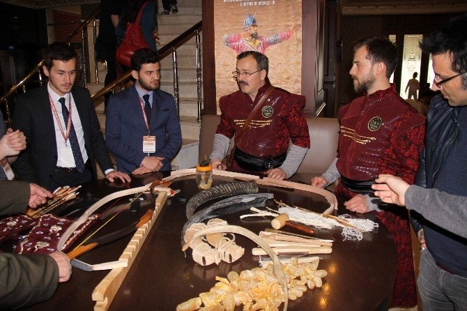 Öte yandan Osmanlı ok ve yaylarının olduğu standı gezen ziyaretçiler, Eğitmen Özek'den üretim aşamaları hakkında detaylı bilgi aldı.