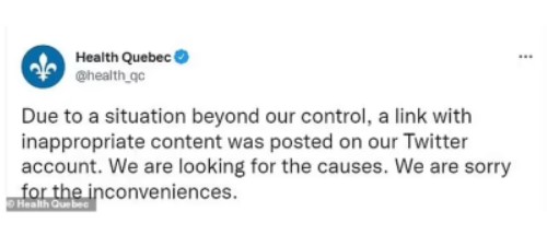 Quebec eyaletinin Sağlık Bakanlığı, sosyal medya ortamı Twitter üzerinden koronavirüs linki paylaşmak isterken porno film linki paylaştı.