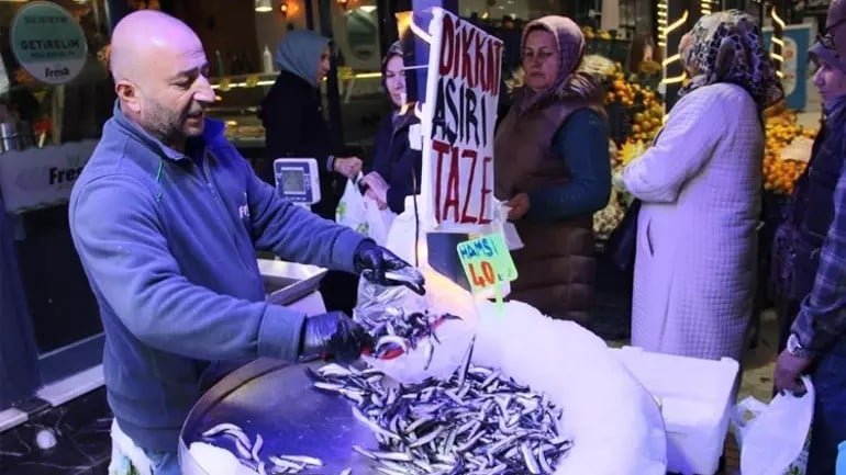 Çorum'da kilogramı 40 TL'ye düşen hamsiden satın almak isteyen vatandaşlar balıkçı önünde metrelerce uzunlukta kuyruk oluşturdu. Trabzon'da ise son haftalarda bol miktarda avlanan hamsinin kilogramı TL'den satışa sunuluyor.