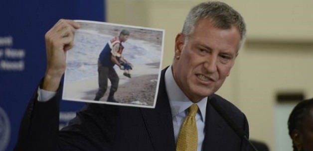New York Belediye Başkanı Bill de Blaşio, Suriyeli mültecileri kabul etmeyen New Jersey Valisi'ne Bodrum'da çekilen Aylan'ın fotoğrafını göstererek cevap verdi