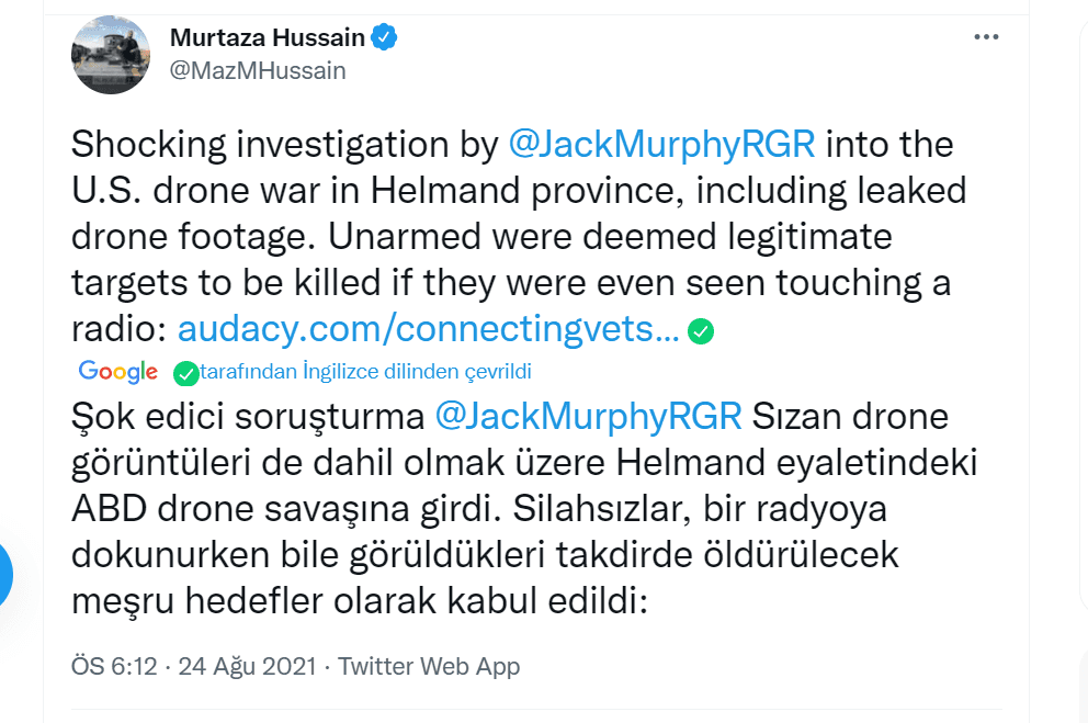 Batılı gazeteci Jack Murphy'nin Afganistan kaynaklı iddiaların üzerine gitmesi ABD insansız hava araçlarının kasten ve sadistçe sivilleri vurduğu skandalını ortaya çıkardı.