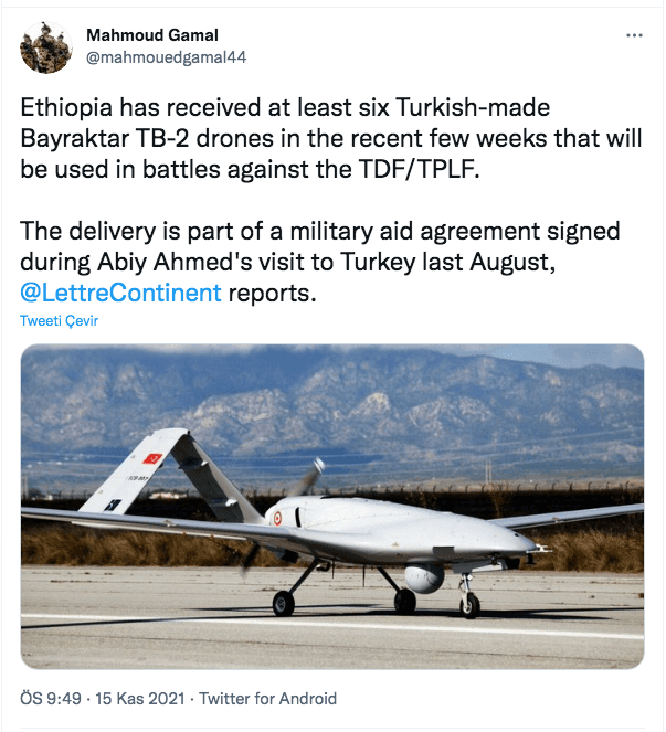 Addis Ababa hükümeti de Türkiye de henüz TB2'lerin Etiyopya'ya gönderildiğine dair bir ifadeyi kamuoyuyla paylaşmadı.