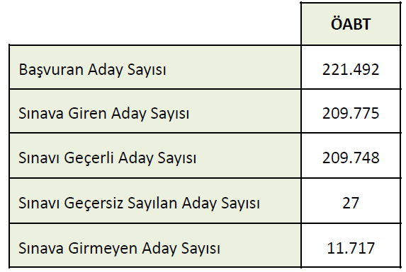 2014 - KPSS ÖABT ADAY SAYILARI