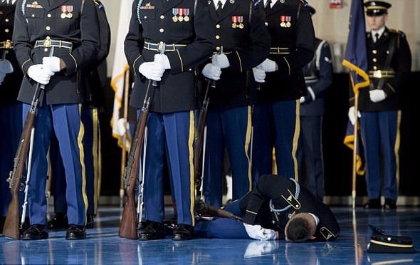Basına yansıyan fotoğraflarda, kendinden geçerek yere düşen askere olayın yaşandığı anda kimsenin müdahale etmediği görülüyor.