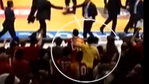 Abdi İpekçi Spor Salonu'nda Galatasaray ile Fenerbahçe takımları arasında oynanan Basketbol Ligi Play-Off yarı final üçüncü maçında Fenerbahçe Başantrenörü Obradovic'e tükürdüğü tespit edilen zanlı yakalandı.