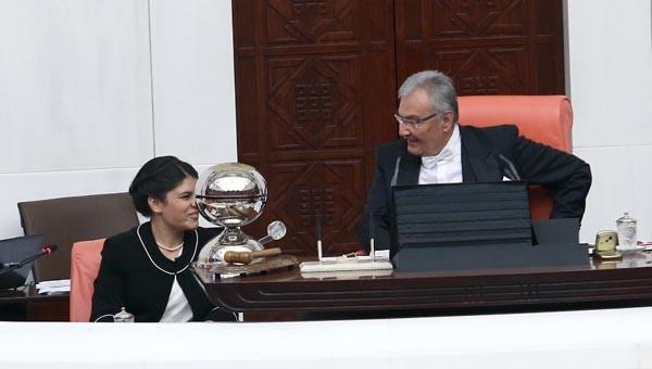 Dilek Öcalan, saat 17.20'de Başkanlık Divanı'ndaki yerini aldı. Öcalan'ın yemin etmesi için adını okuduğu ilk isim AK Parti Milletvekili Muhammet Emin Akbaşoğlu oldu.