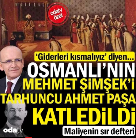Oda TV, 17. yüzyılda devlet bütçesini disipline etmeye çalıştığı için katledilen Tarhuncu Ahmet Paşa örneği üzerinden akıl almaz bir kıyaslamaya gitti. "Giderleri kısmalıyız" dediği için bedel ödeyen bir devlet adamının hikayesini, bugün aynı mali disiplini savunan Mehmet Şimşek ile birleştiren site, adeta Bakan Şimşek’in sonunun da benzer olacağı imasında bulundu.