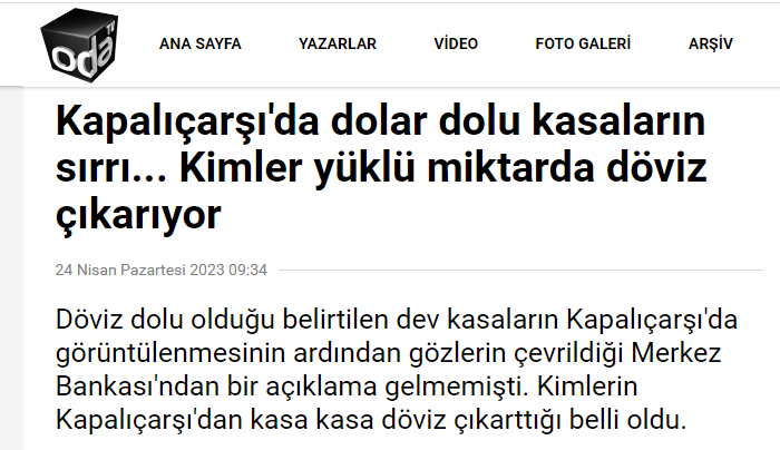 "Döviz dolu olduğu belirtilen dev kasaların Kapalıçarşı'da görüntülenmesinin ardından gözlerin çevrildiği Merkez Bankası'ndan bir açıklama gelmemişti. Kimlerin Kapalıçarşı'dan kasa kasa döviz çıkarttığı belli oldu." denilen haberde, aynı yalan başka bir biçimde pazarlandı: