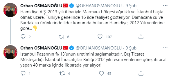 AK Parti döneminde yapılan çalışmalar sonucu damacana su ve bardak su ürünlerinde lider konumunda bulunan Hamidiye Su’ya yönelik Abdülhamid Han Hazretleri’nin torunu Orhan Osmanoğlu övgüler yağdırdı.