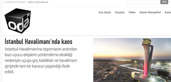 "İstanbul Havalimanı'nda kaos" başlığıyla İstanbul Havalimanı'ndaki yoğunluğu kaos olarak nitelendiren Odatv "İstanbul Havalimanı'na taşınmanın ardından bazı uçucu ekiplerin yönlendirme eksikliği nedeniyle uçuşa geç kaldıkları ve havalimanı girişinde tam bir kaosun yaşandığı ifade edildi" iddiasında bulundu.