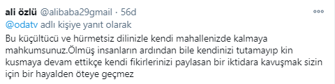 Milli-manevi değerleri yaptığı haberlerle alaşağı eden Odatv’nin ölüm haberi üzerinden attığı skandal manşete tepki yağdı. Yavuz Bahadıroğlu'nun oğlu Mücahit Birinci de babasının acısı daha tazeyken Odatv tarafından atılan manşete tepki gösterdi.