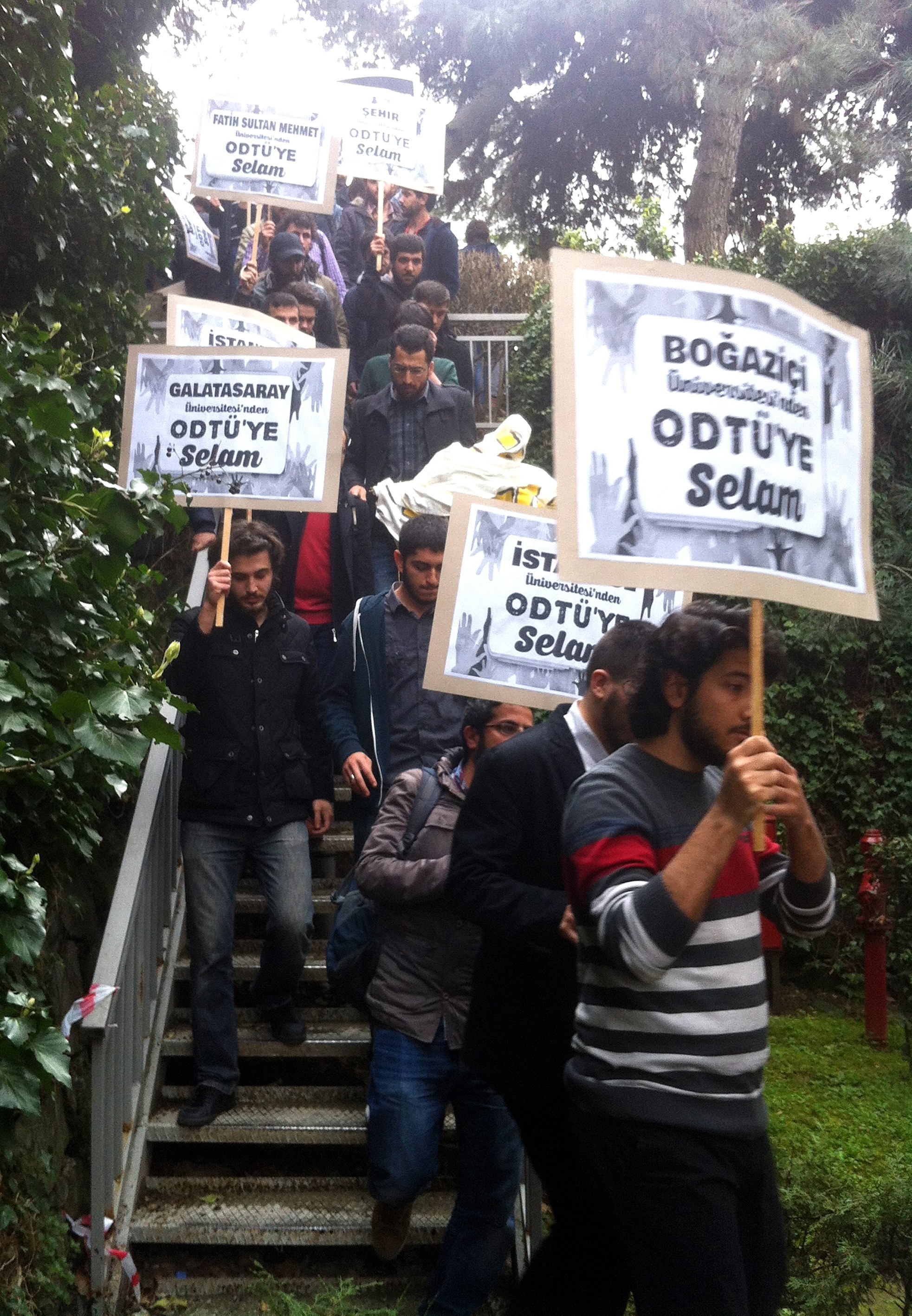 İstanbul Boğaziçi Üniversitesi'nde ODTÜ’de yaşanan vandallığa tepki gösteren öğrenciler, “Mü'minler kardeştirler” pankartı altında tüm dünyaya itidal mesajı verdiler.