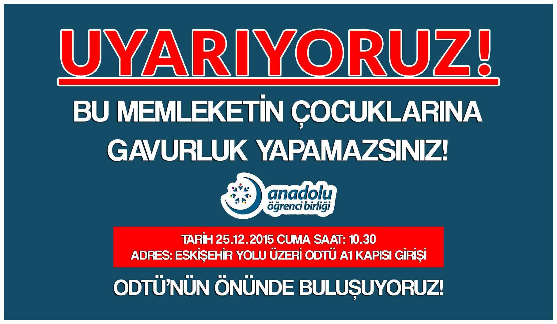 Anadolu Öğrenci Birliği öncülüğünde 25 Aralık 2015 (Cuma) günü saat 10:30'da ODTÜ'de Namaz kılan öğrencilere yönelik gerçekleştirilen saldırı ODTÜ önünde lanetlenecek.