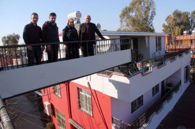 Necmettin Afşin’in aklına evden eve üst geçit yapmak fikri geldi. Hemen ustalarla görüşen baba Afşin, fikrini hayata geçirmeye başladı. Afşin 3 bin lira harcayarak evden eve üst geçit yaptırdı. Şimdi Afşin ailesi fertleri çok daha rahat bir şekilde birbirlerine gidip gelebiliyorlar.