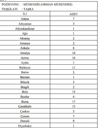 * 50 adet Mühendis (Orman Endüstri Mühendisi) alımı,