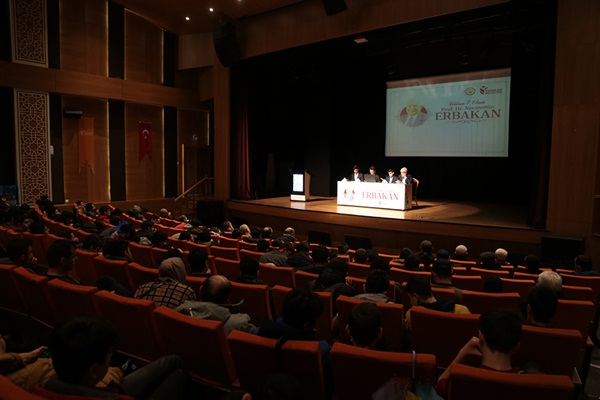 Türkiye'nin yakın siyasi hayatına damga vuran şahsiyetlerden Erbakan'ı, "Prof. Dr. Necmettin Erbakan'ın Siyasi Hayatı ve Görüşü" başlıklı sunumunda ele alan Tolga Tutumlu ise, Erbakan'ın siyasete atıldığı yıllarda yaşadıklarını ve bakanlık, başbakan yardımcılığı ve başbakanlık görevlerini üstlendiğinde yaptığı çalışmaları aktardı. Tutumlu, "Erbakan siyasete girmek için Adalet Partisi'ne müracaat etmiştir. Aday adaylığı Süleyman Demirel tarafından reddedilince, Konya'dan bağımsız aday olarak iki milletvekili seçilecek kadar oy alarak meclise girmiştir" ifadelerini kullandı.
