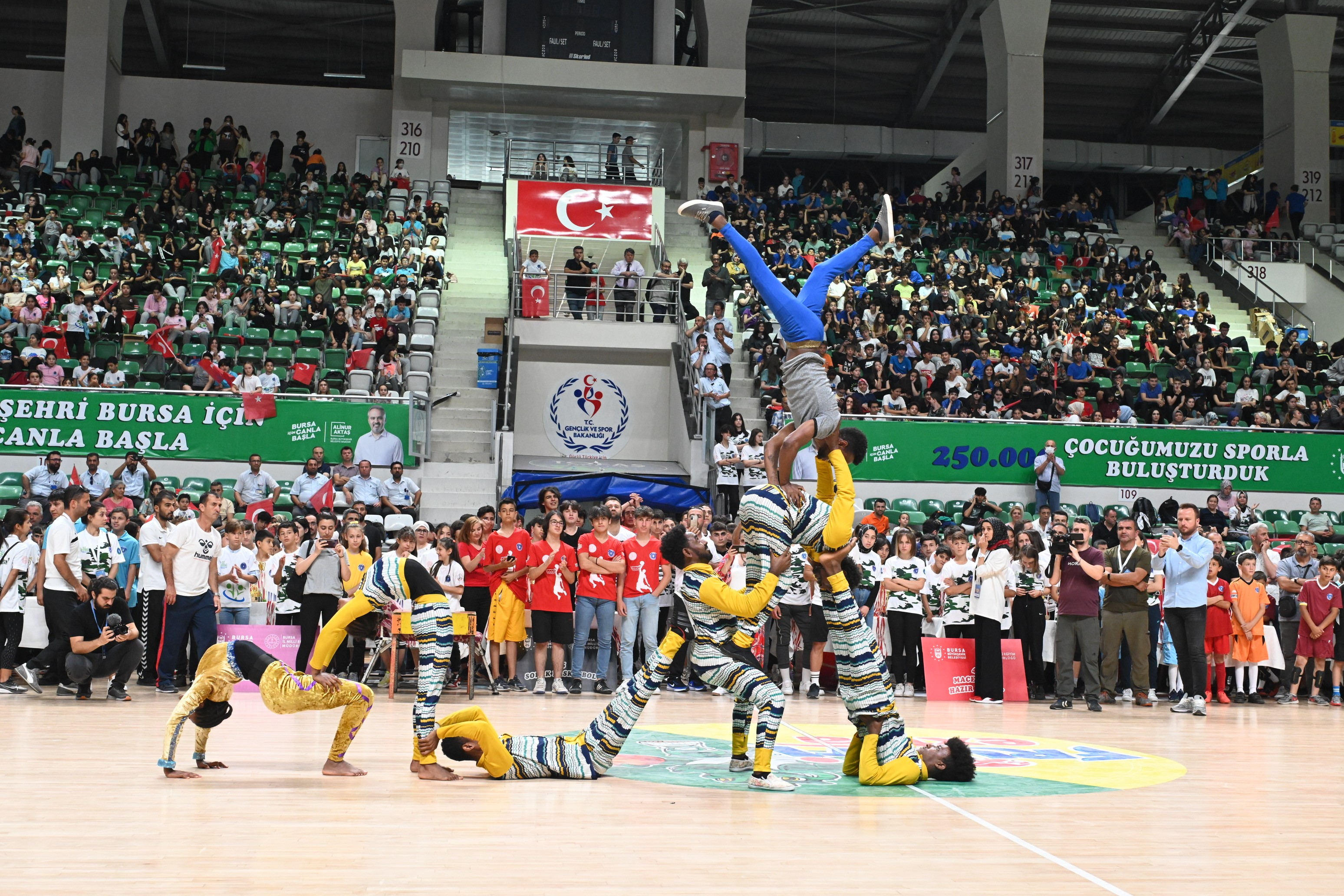 Sağlıklı şehir Bursa’da çocukları sporla buluşturan Büyükşehir Okul Spor Etkinlikleri (BOSE) ödül ve kapanış töreni, coşkuyla gerçekleştirildi. TOFAŞ Spor Salonu’nda düzenlenen törene, sporcu öğrencilerin ödül heyecanı damgasını vurdu. Büyükşehir Belediye Başkanı Alinur Aktaş, Gençlik ve Spor İl Müdürü Rahmi Aksoy, İl Milli Eğitim Müdür Vekili Mustafa Bilici ile AK Parti İl Başkanı Davut Gürkan da bu heyecanlı günlerinde öğrencileri yalnız bırakmadı. Öğrencilerin yıl boyu gösterdikleri performansın madalyalar ile taçlanacağı tören, Bando Roll Grubu’nun müzik şöleni ile başladı. Etiyopya Akrobasi Grubu, palyaço ve illüzyon gösterisi de öğrenciler tarafından beğeniyle izlendi.
