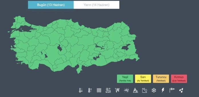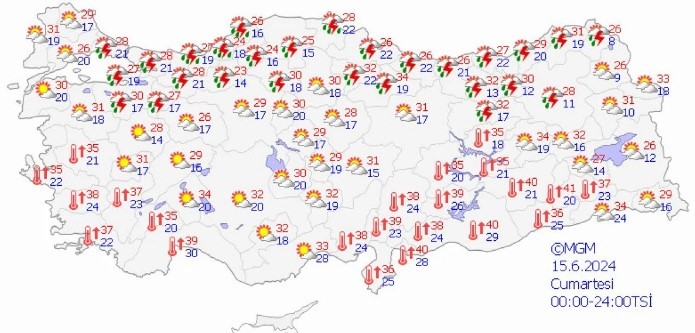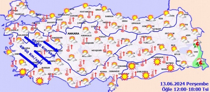 Parçalı ve az bulutlu, öğleden sonra ve akşam saatlerinde Hakkâri çevreleri ile Van’ın doğu kesimlerinin kısa süreli ve yerel sağanak ve gök gürültülü sağanak yağışlı geçeceği tahmin ediliyor.
